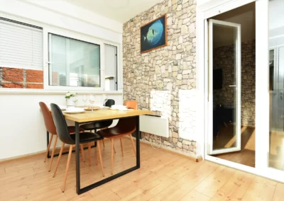 The apartment is located in a tourist-friendly part of the town called Diklo, which is a few kilometers away from the centuries-old town, and the beautiful pebble beaches are just 300 meter away, perfect for families with children, with numerous recreational amenities and sport activities both on land and on water.