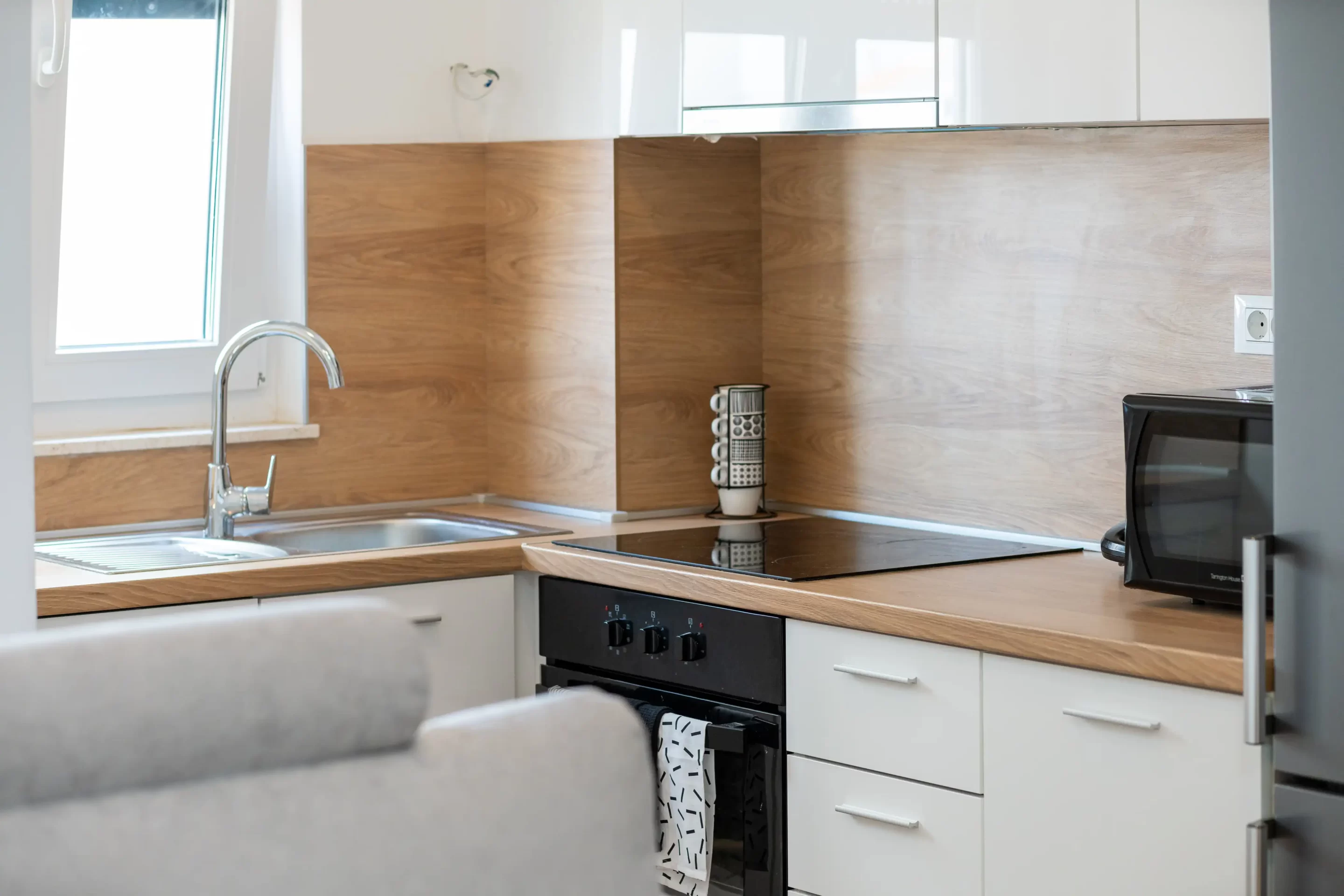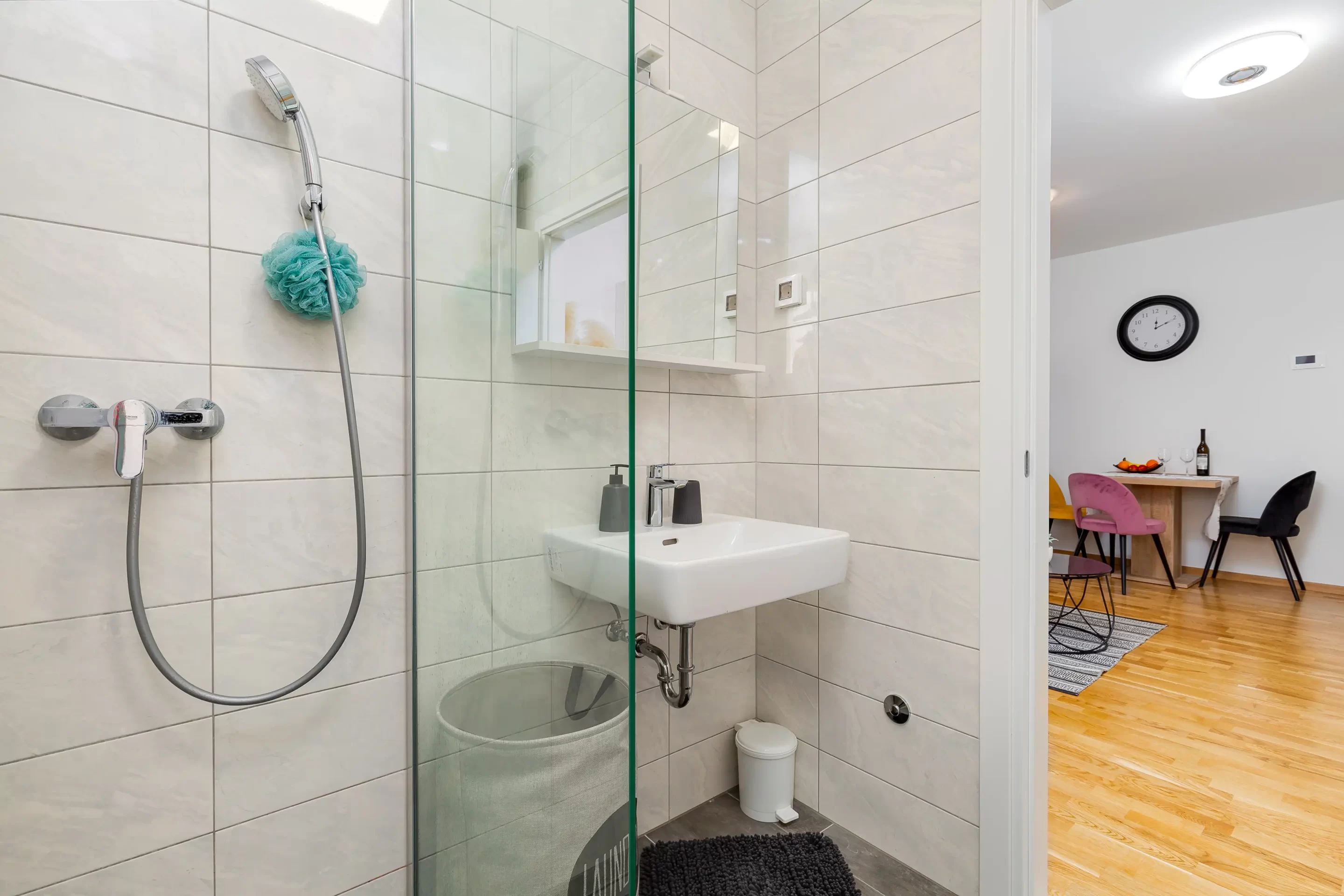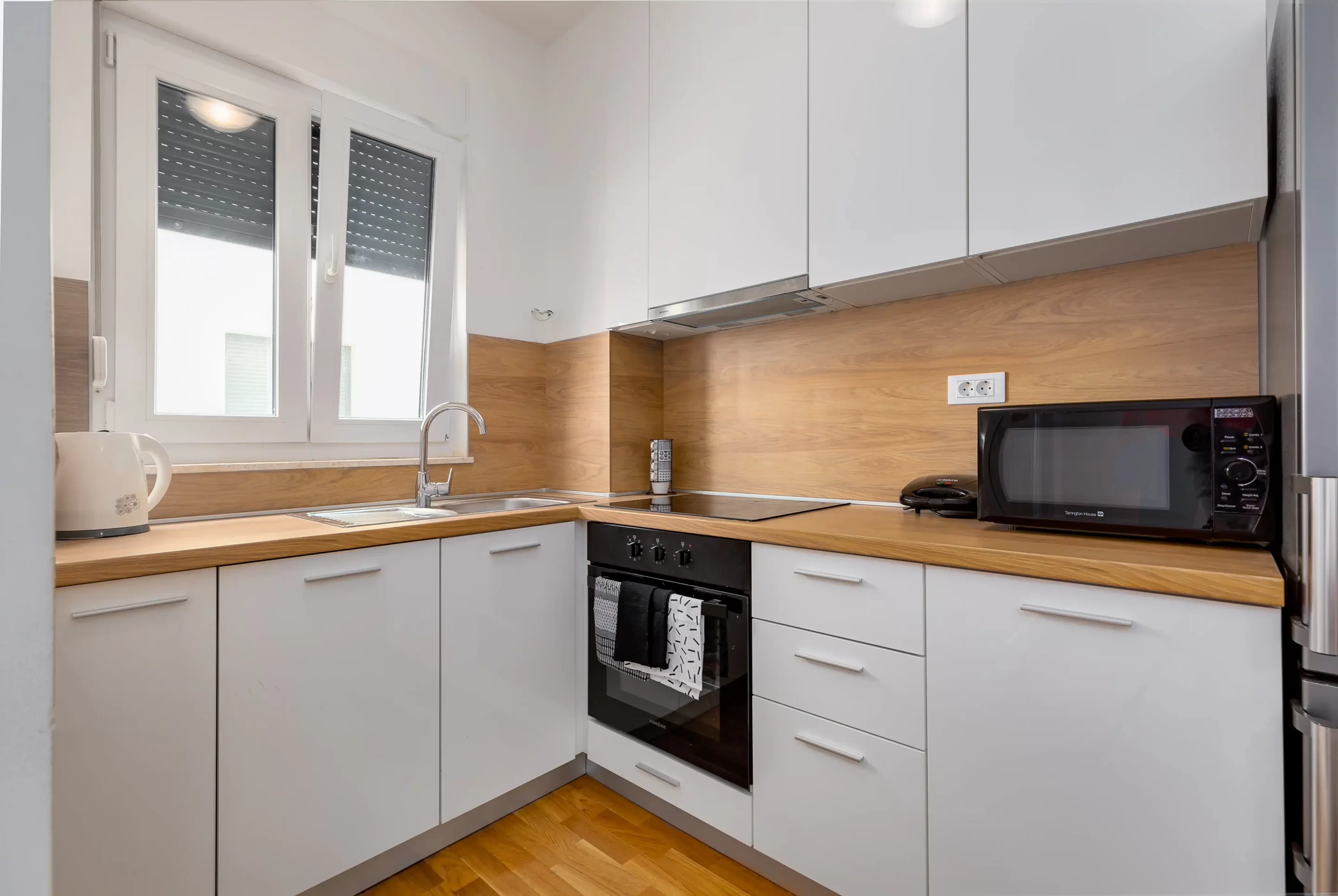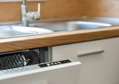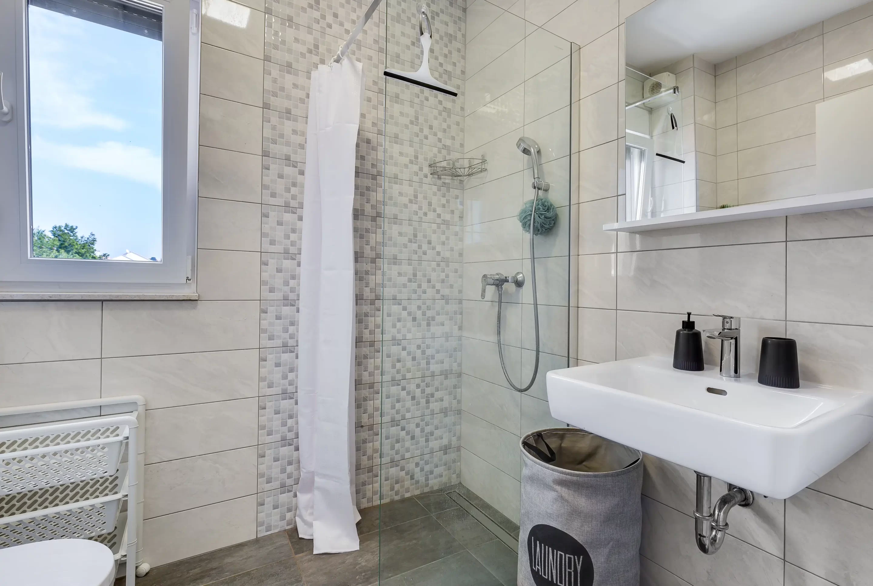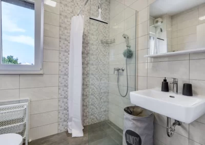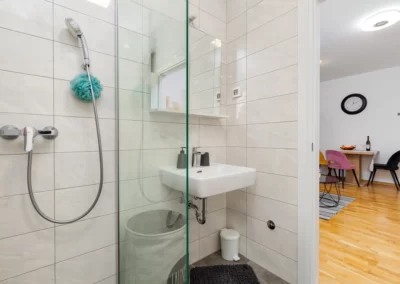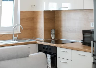 Kitchen and bathroom fully equipped for a longer stay.
