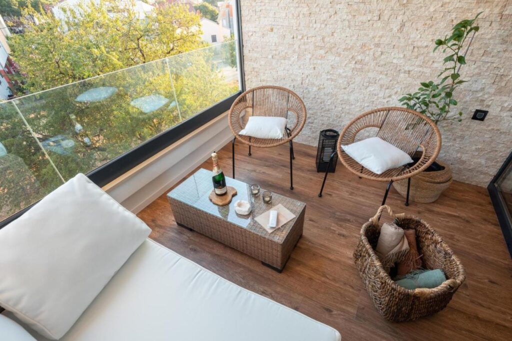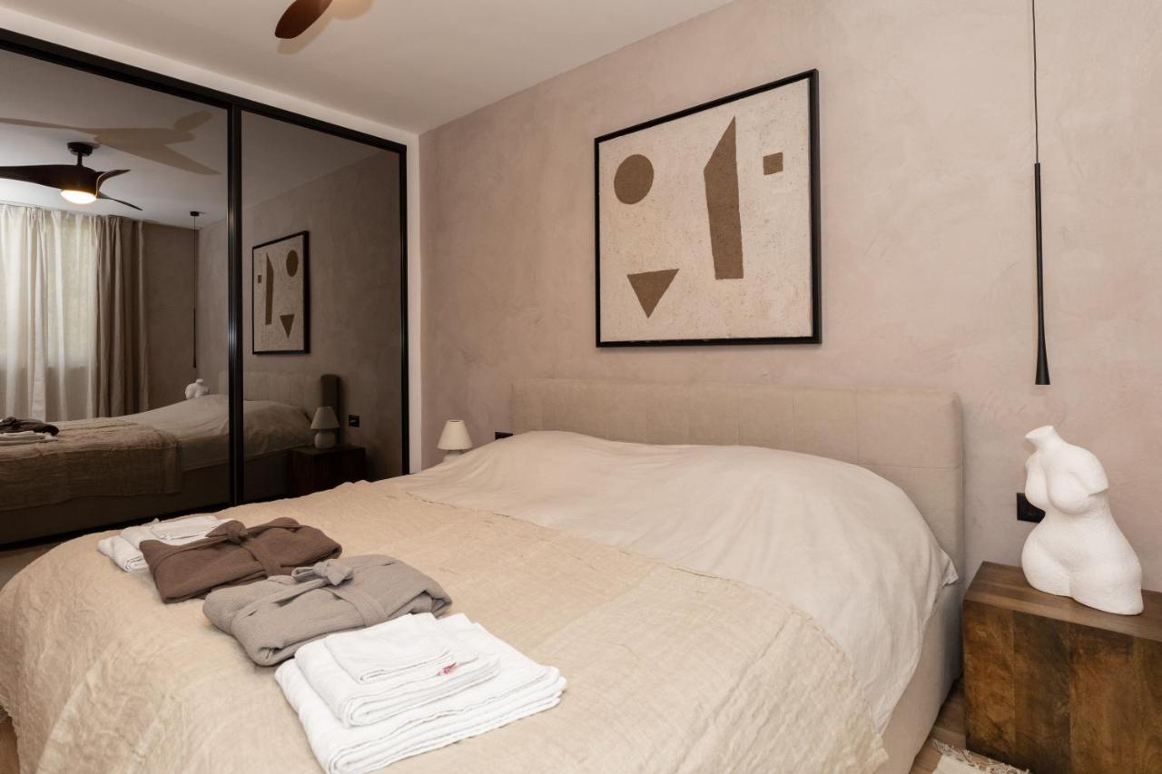 Terra Medius apartment is a unique fusion of a modern and Mediterranean design. Harmonious earth colors, natural materials and paintings from our local artist give you not only a true aesthetic experience but a sense of peace and serenity.
