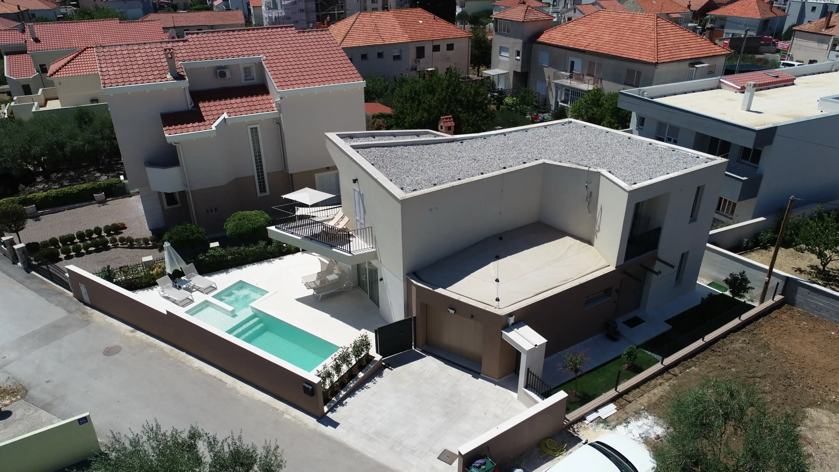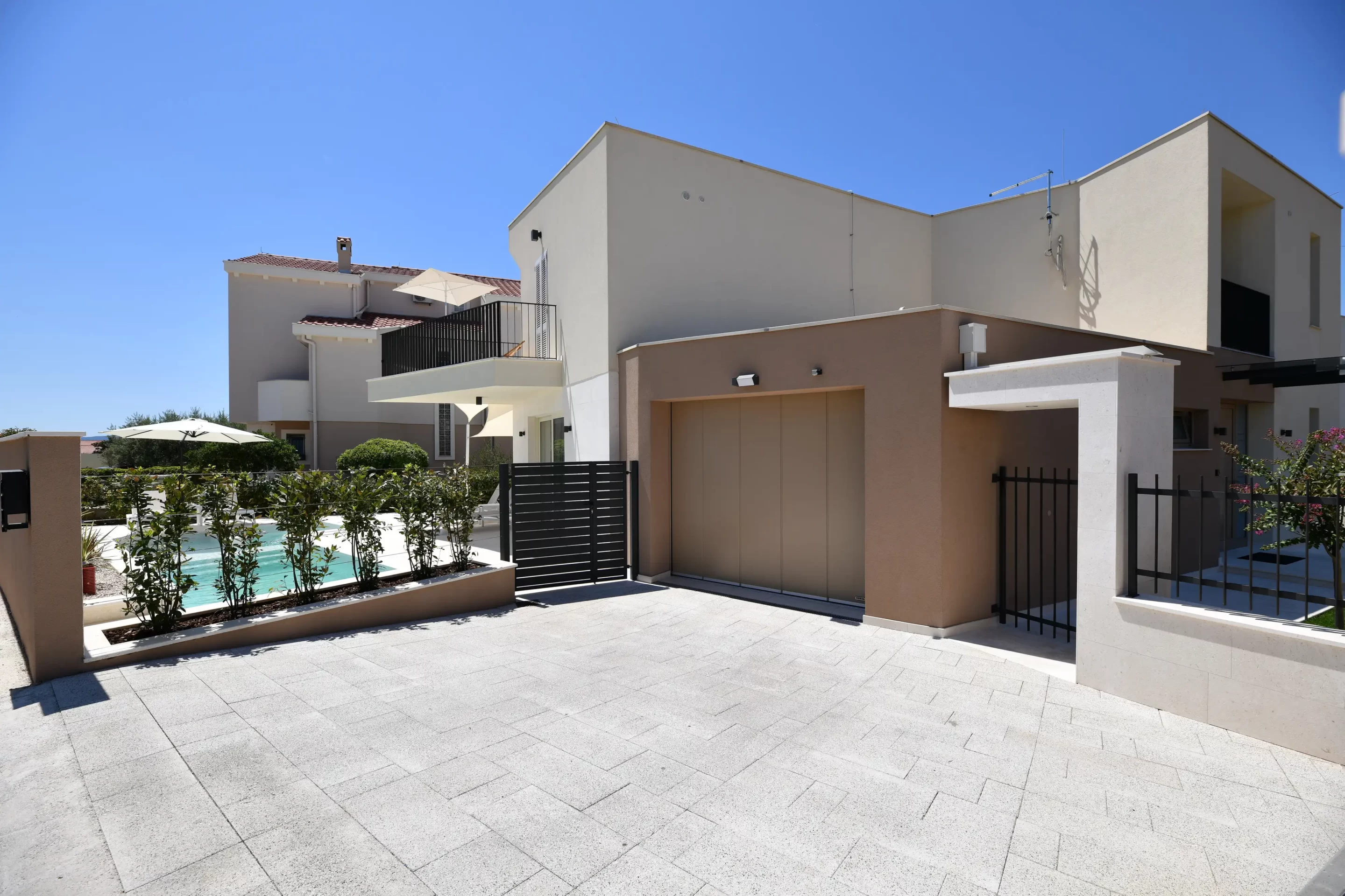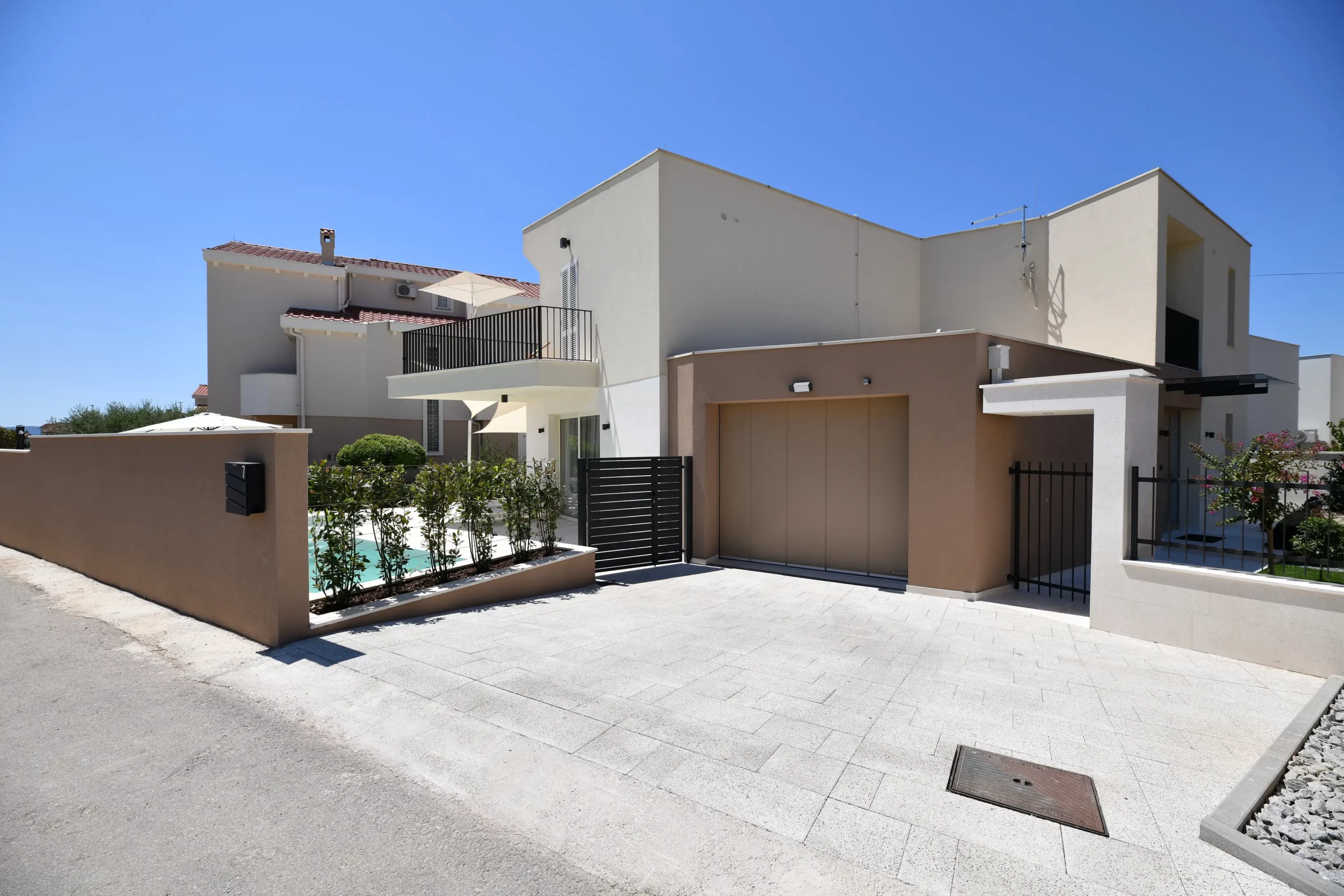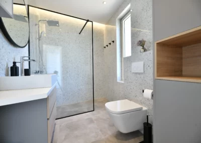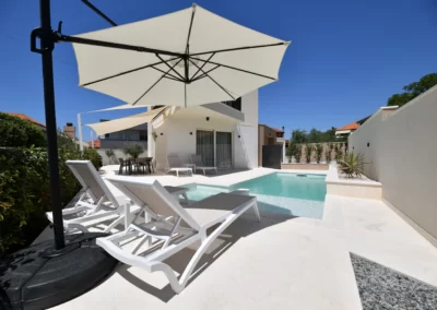 The villa was built in 2020 in a modern style, has 140 m2 of living space, while the total area of the property is 380 m2. It is 1,6 km away from the nearest sea and beach, and the same distance from the nearest restaurants and cafes. The villa can accommodate a maximum of 6 people.