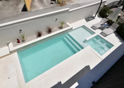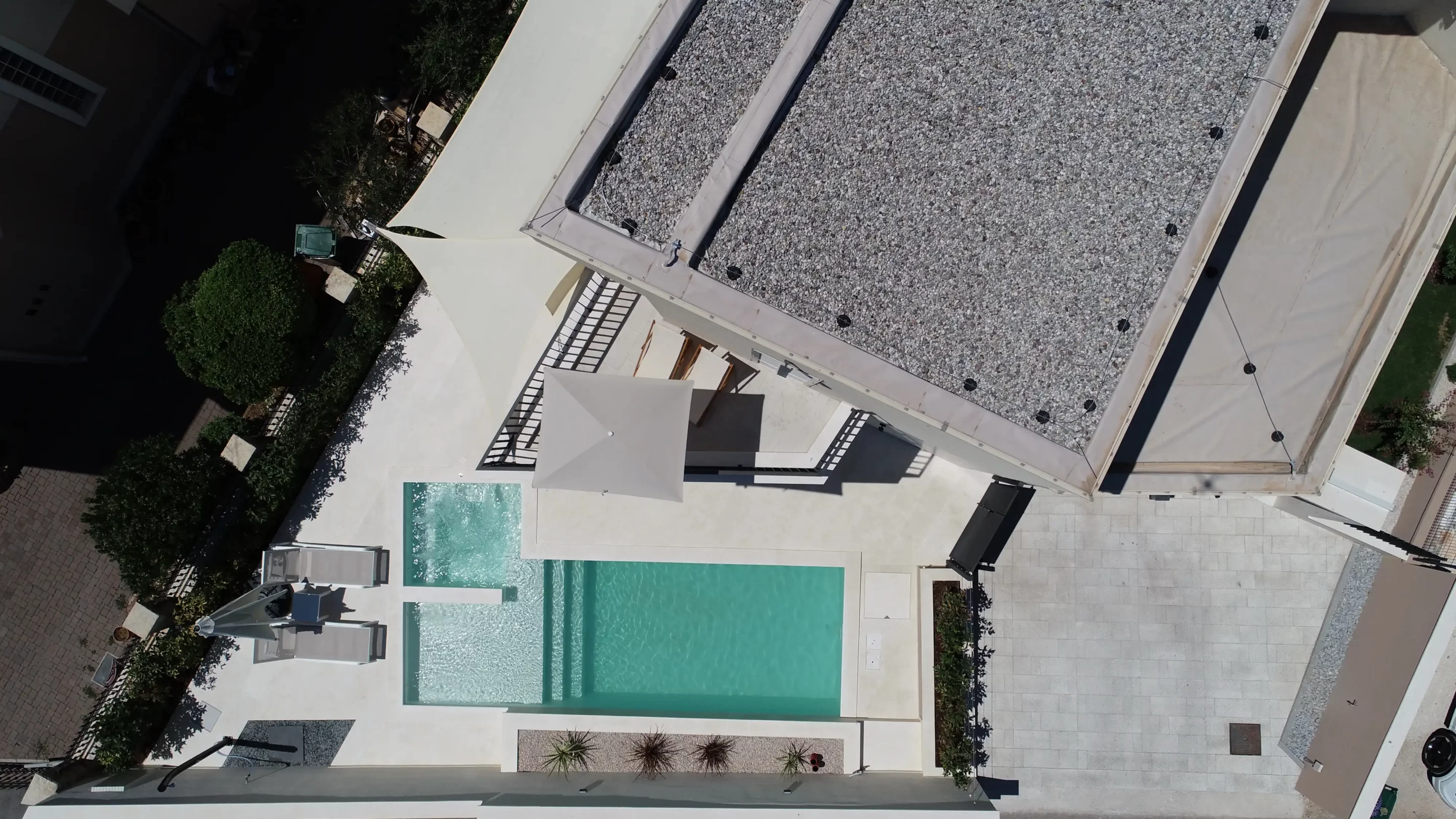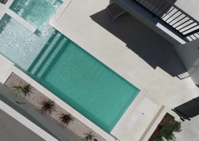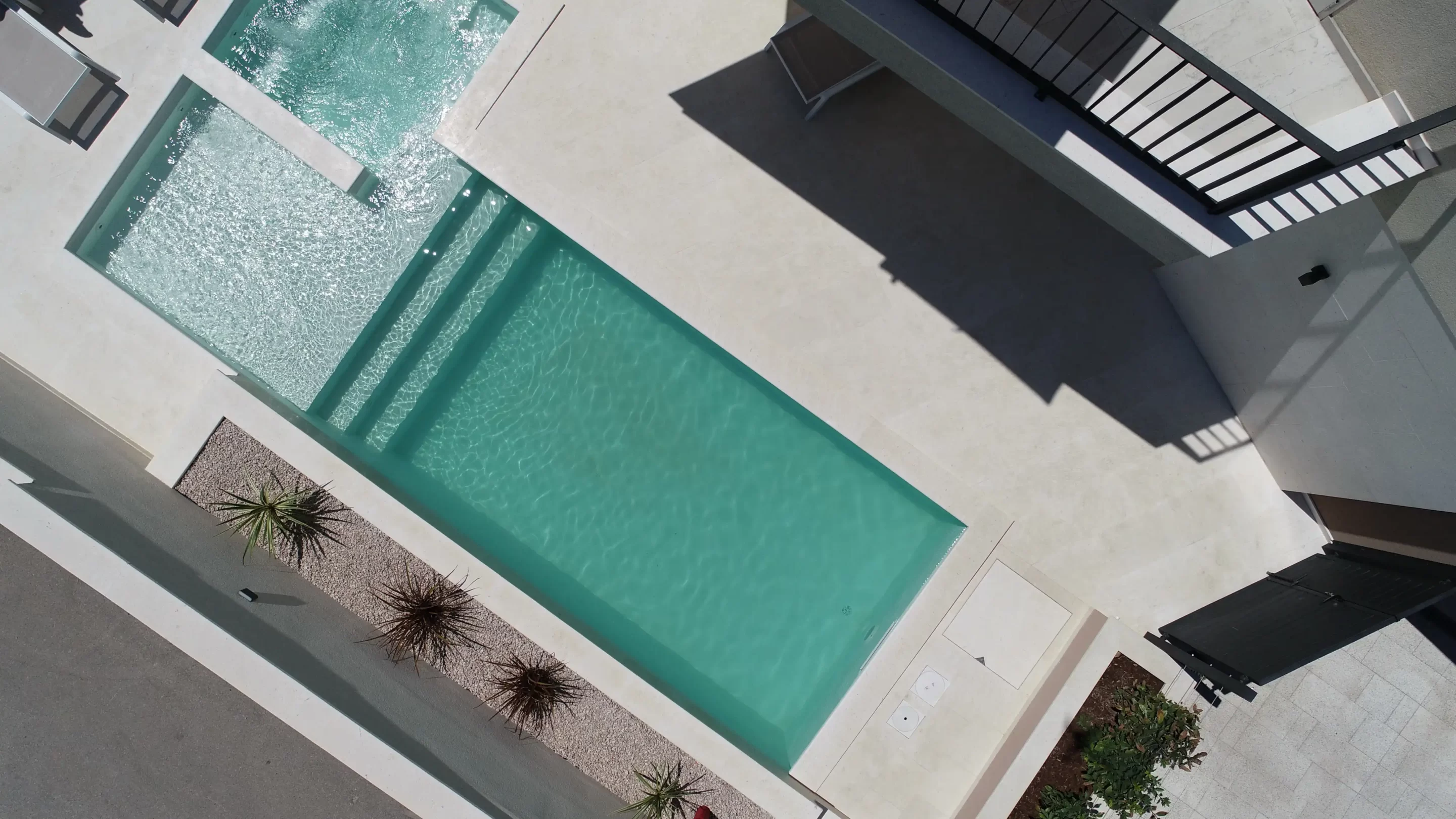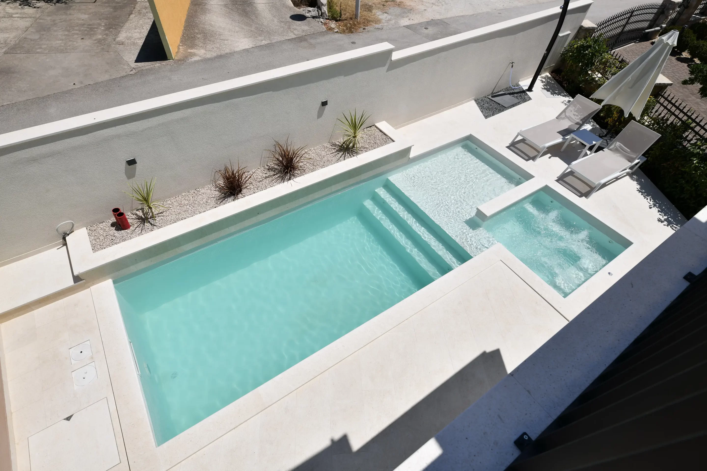 The pool contains a hydromassage section for relaxation as well as a shallow section for children.