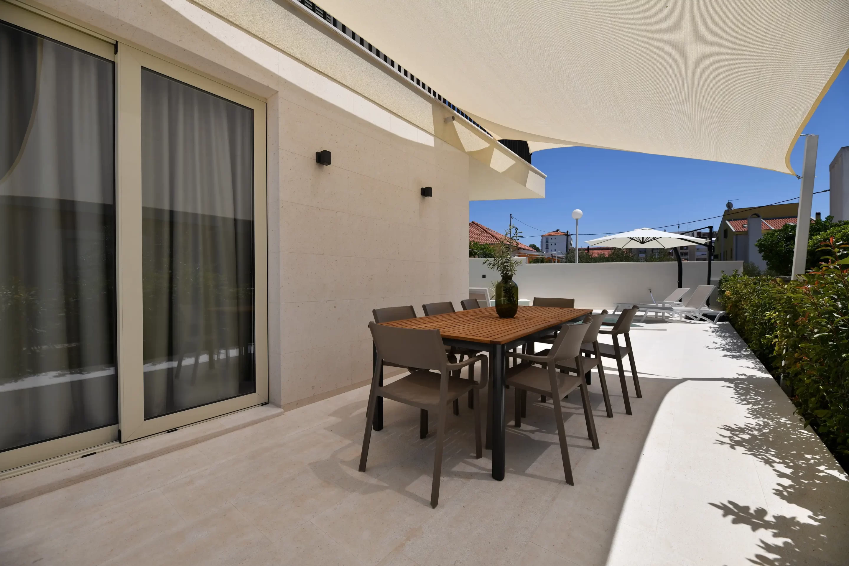 The kitchen and dining room lead directly to the outdoor terrace, which will leave you breathless. You will find pleasant refreshment during the day or night in the pool of 21 m2 and a depth of 1.5 m.