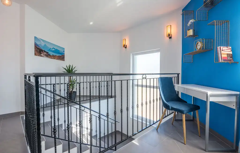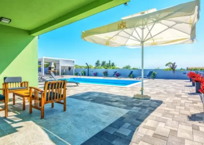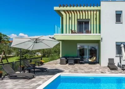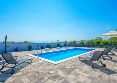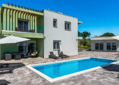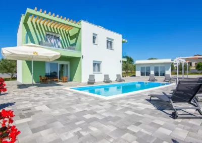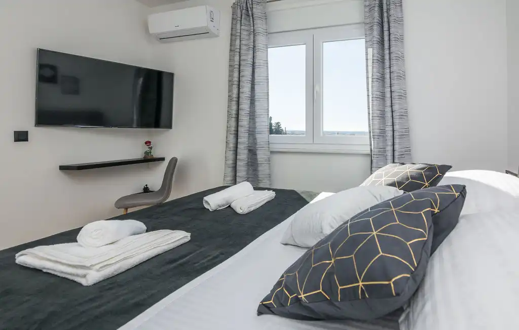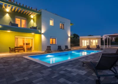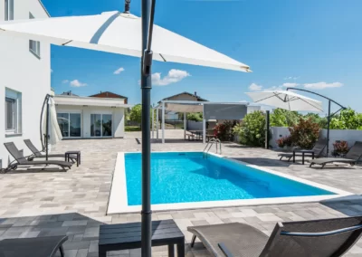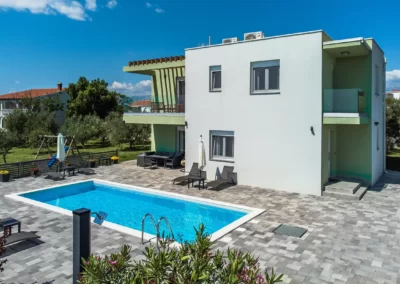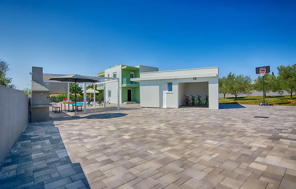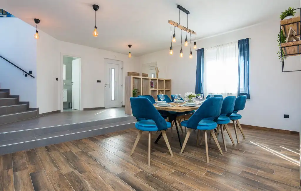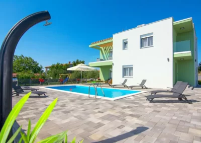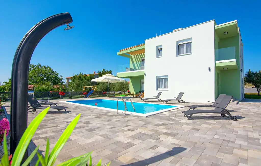 Nin Holiday Home is located in a small village Vrsi next to the picturesque town of Nin. Villa consists of a fully equipped kitchen (gas stove, oven, refrigerator with freezer, coffee machine ..), dining room and living room in one space. The living room is equipped with TV. Upstairs are 3 bedrooms with double beds and 3 bathrooms with shower, there is also a washing machine. In the outer part there is a pool with garden furniture and fenced garden with grill.
