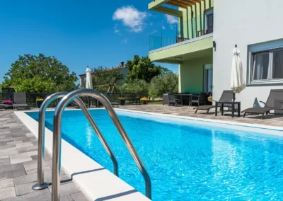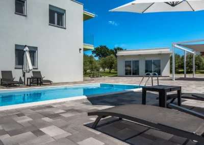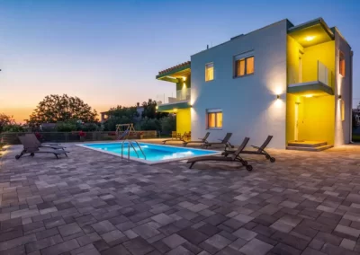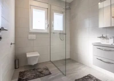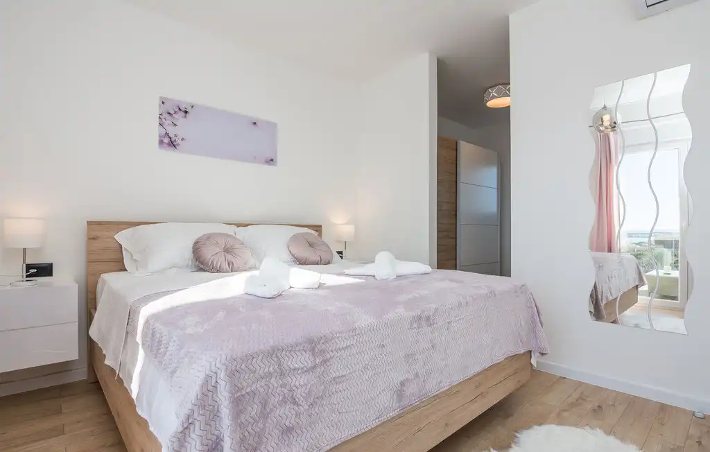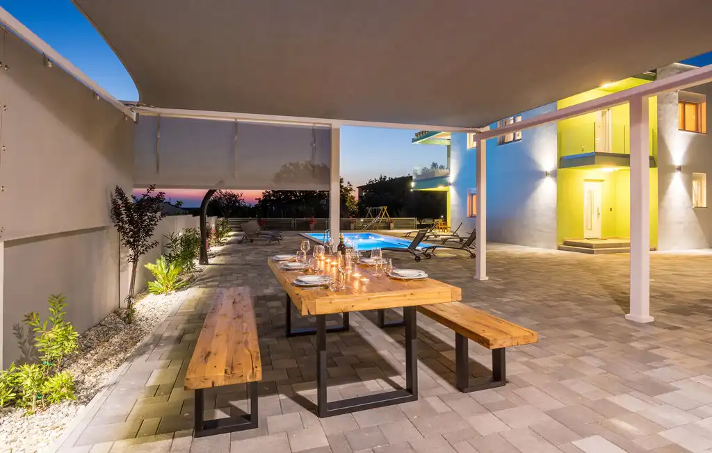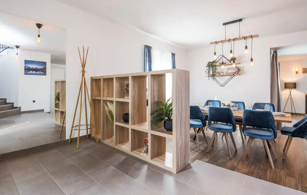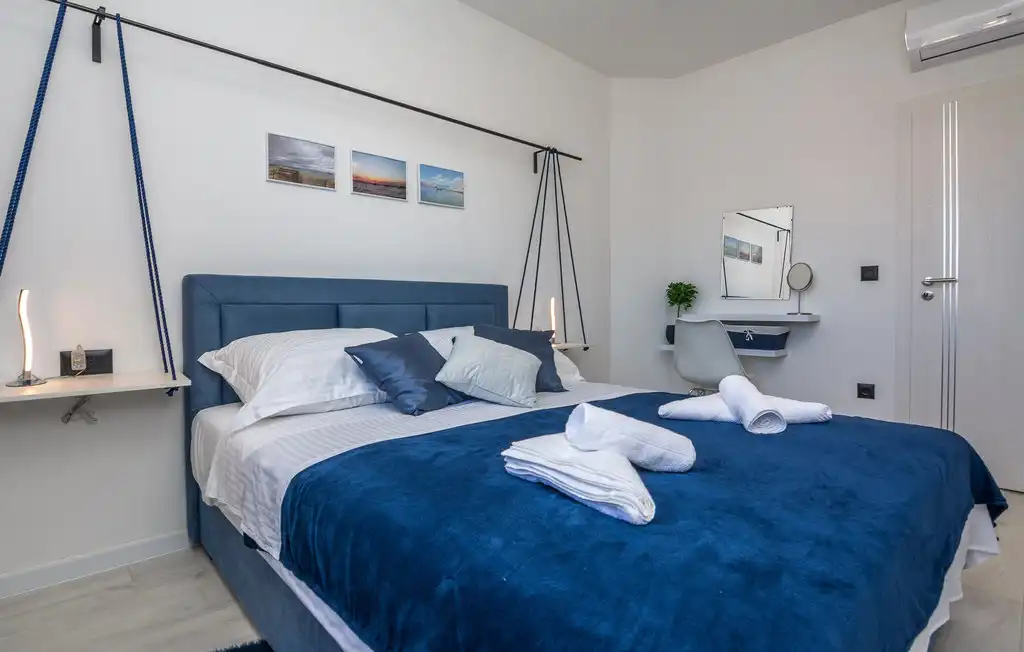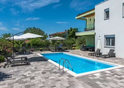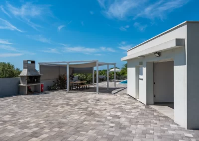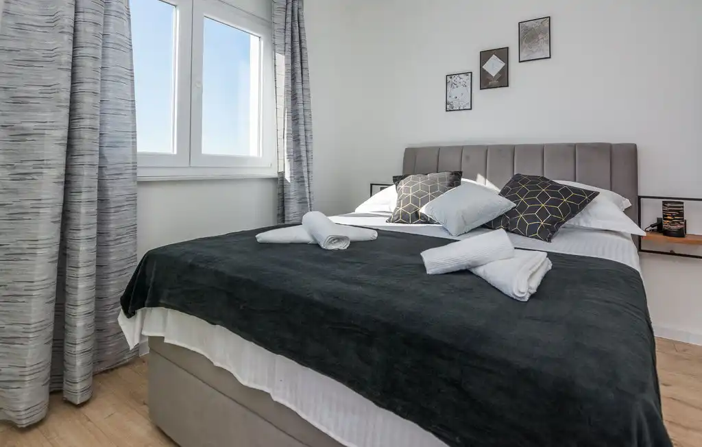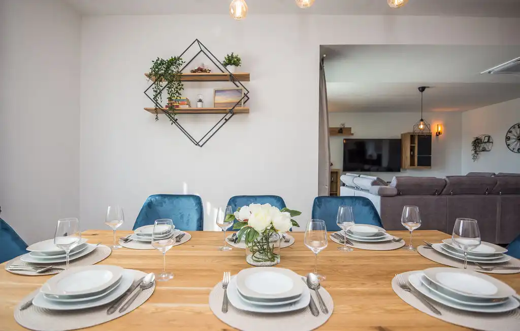 Nin Holiday Home is located in a small village Vrsi next to the picturesque town of Nin. Villa consists of a fully equipped kitchen (gas stove, oven, refrigerator with freezer, coffee machine ..), dining room and living room in one space. The living room is equipped with TV. Upstairs are 3 bedrooms with double beds and 3 bathrooms with shower, there is also a washing machine. In the outer part there is a pool with garden furniture and fenced garden with grill.