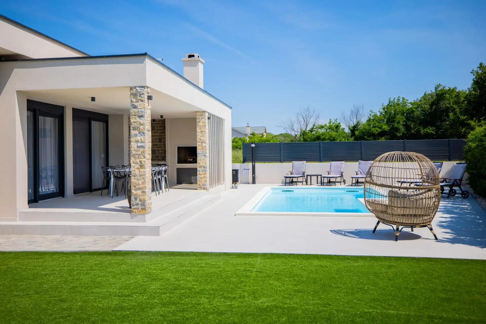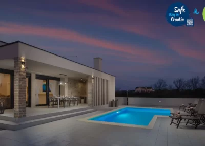 The 4x8 meter pool is heated so you can rent a villa even when it's not summer and you want to relax and enjoy your free time. The covered porch has an outdoor dining table and an outdoor charcoal grill so you can create unforgettable moments in good company and good food.Villa is a great choice for your holiday because it offers you comfort, luxury and a great location that offers you many opportunities to relax and explore the beautiful Adriatic coast.