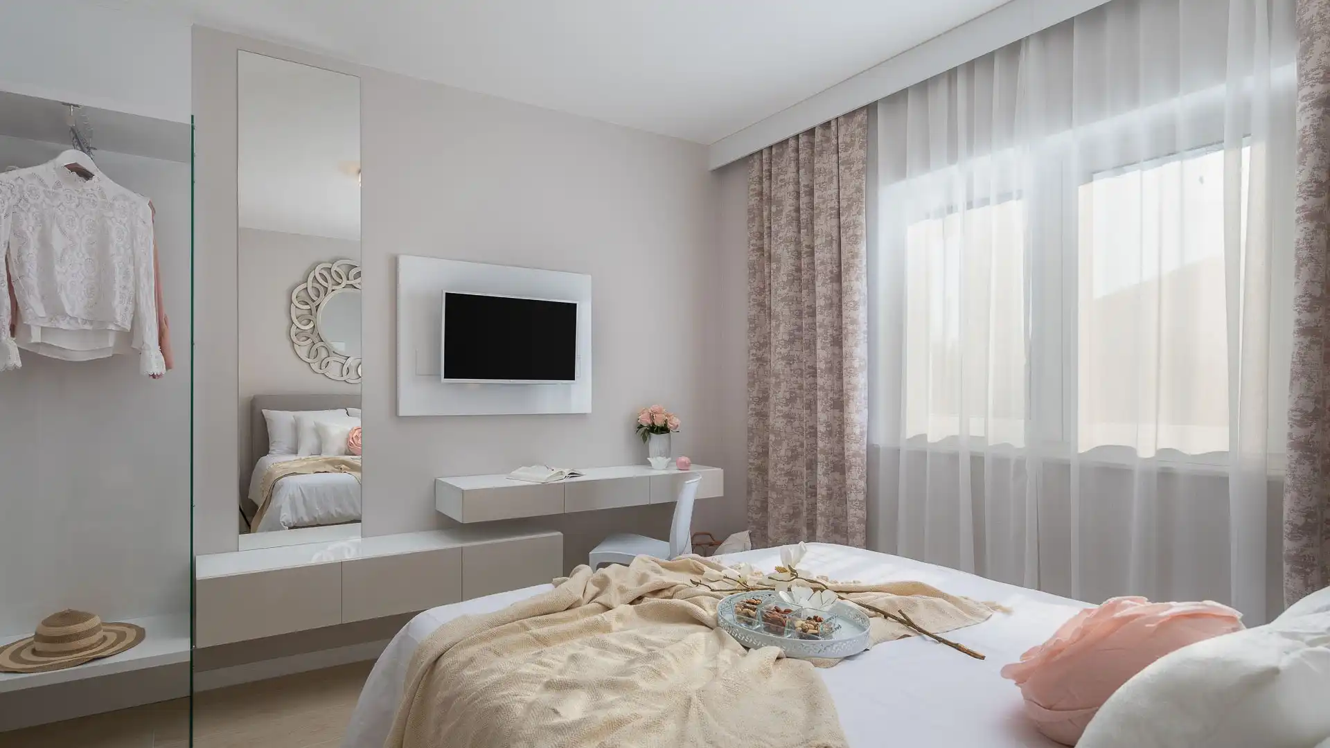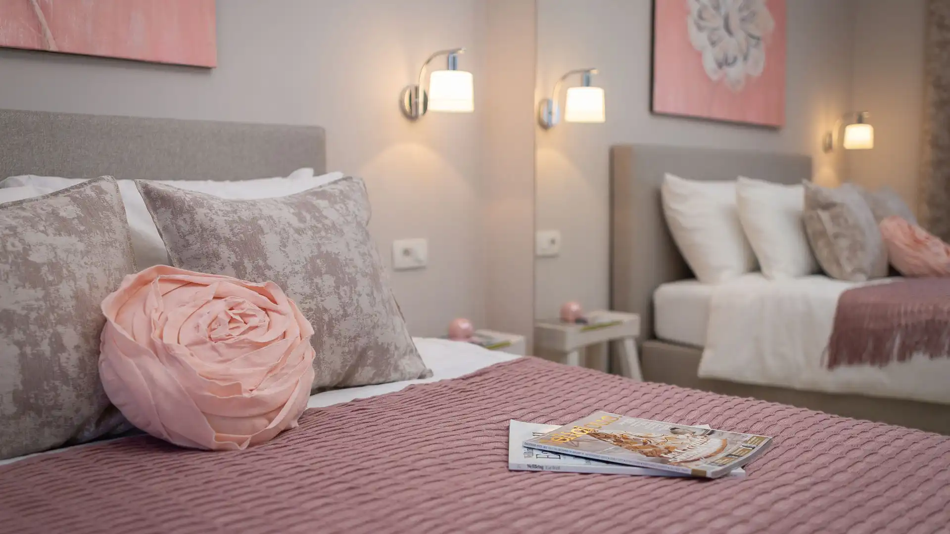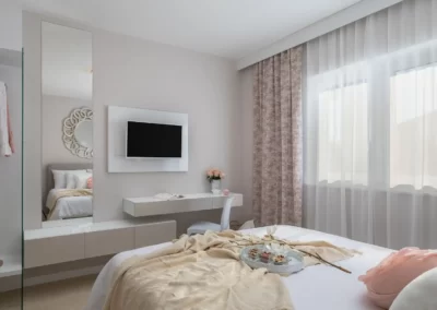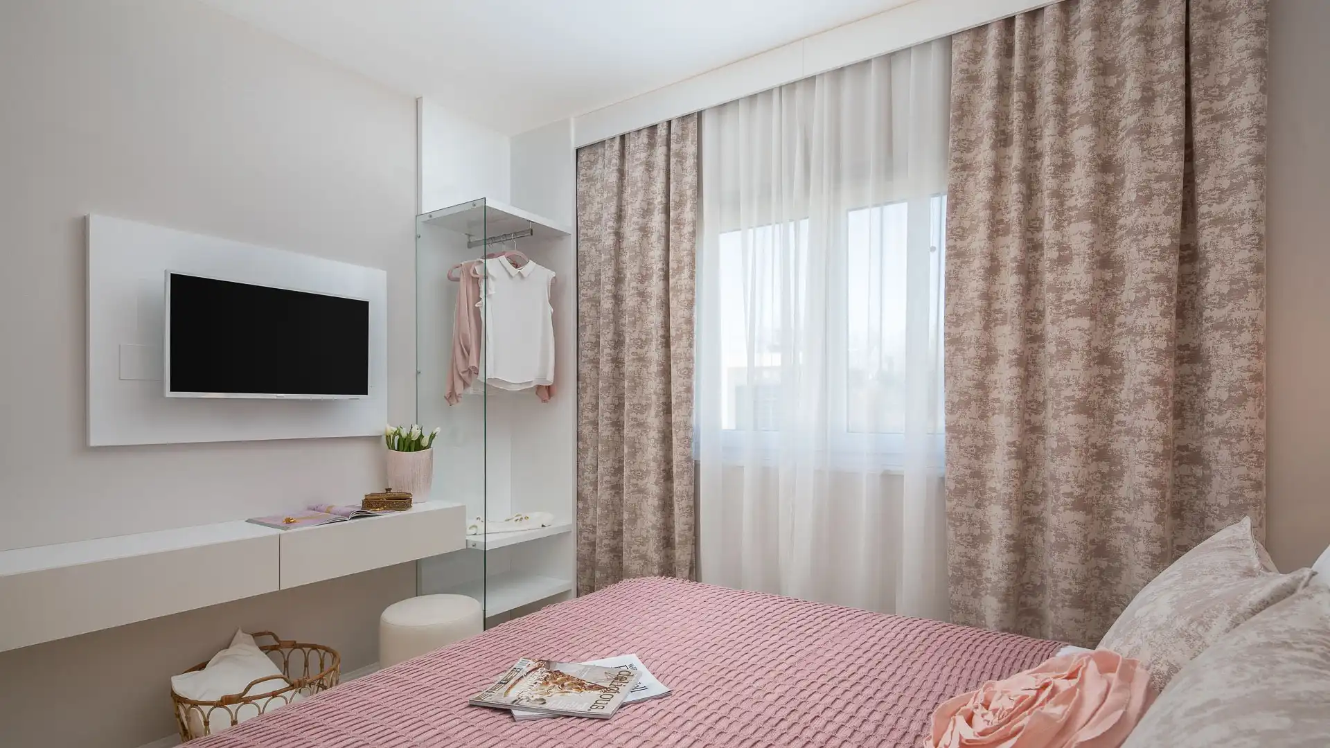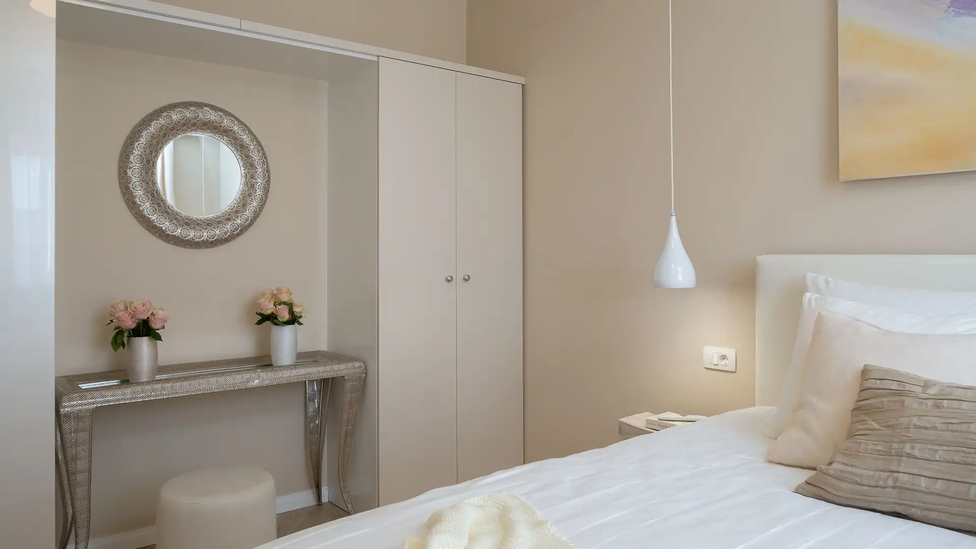 If you are not in the mood for preparing a meal, there are numerous restaurants nearby that will delight all guests who love Mediterranean cuisine. The shallow, long sandy shoreline, which is especially suitable for children, extends to 8000 meters. The most famous one is Queen's Beach, ranked at the very top of the world's beaches by its beauty. Guests who like active vacation can choose between windsurfing, kayaking, beach volleyball, paintball, tennis, football, basketball and water sports.