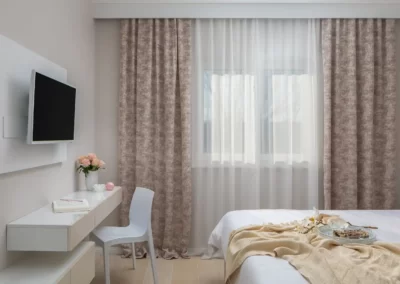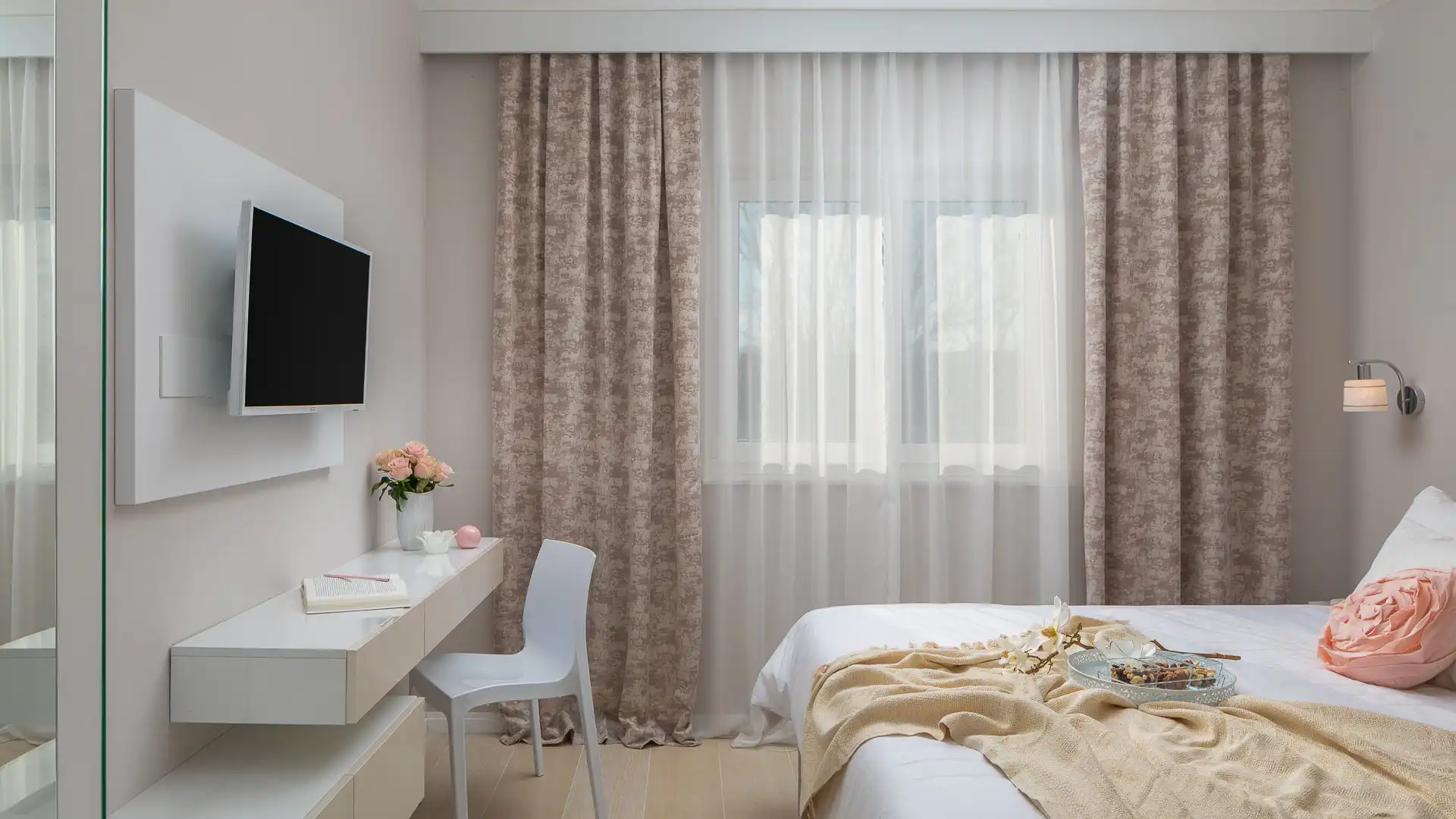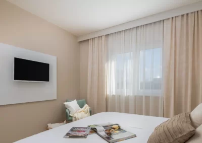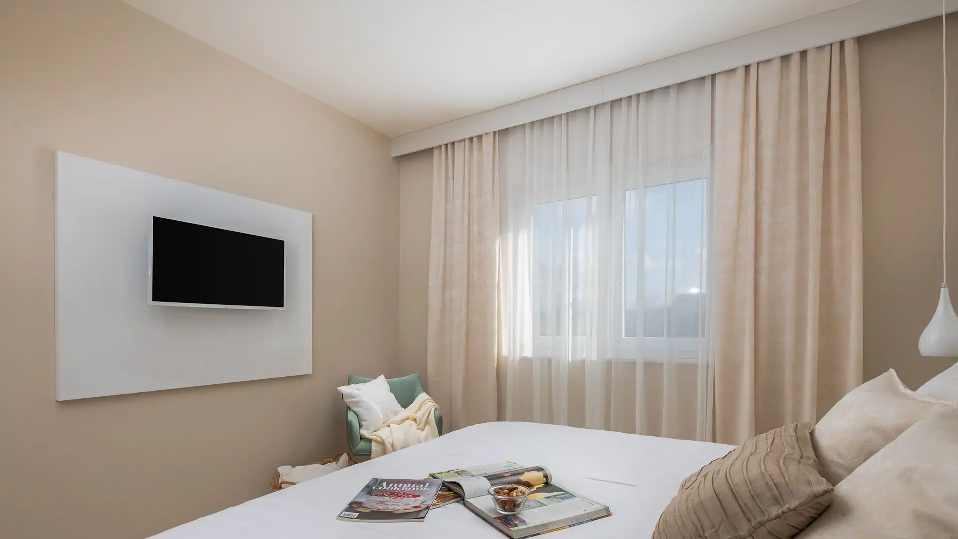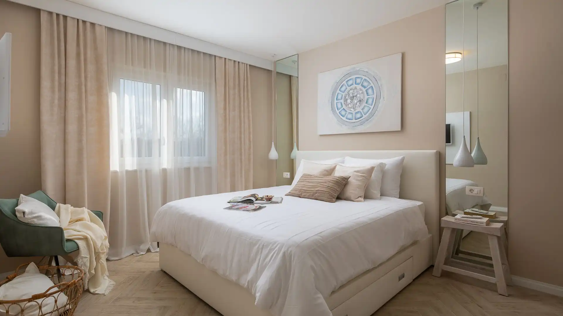 If you are not in the mood for preparing a meal, there are numerous restaurants nearby that will delight all guests who love Mediterranean cuisine. The shallow, long sandy shoreline, which is especially suitable for children, extends to 8000 meters. The most famous one is Queen's Beach, ranked at the very top of the world's beaches by its beauty. Guests who like active vacation can choose between windsurfing, kayaking, beach volleyball, paintball, tennis, football, basketball and water sports.