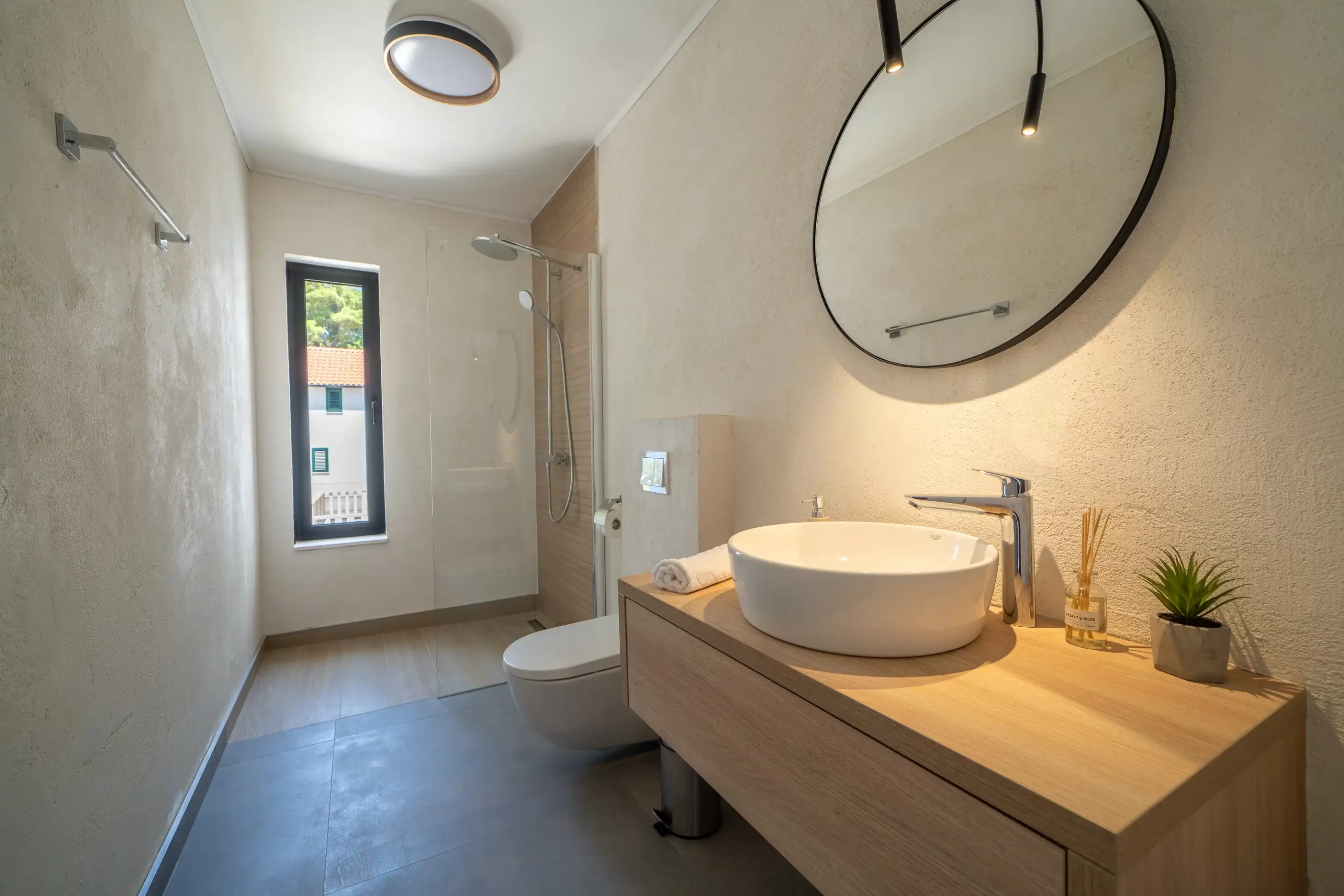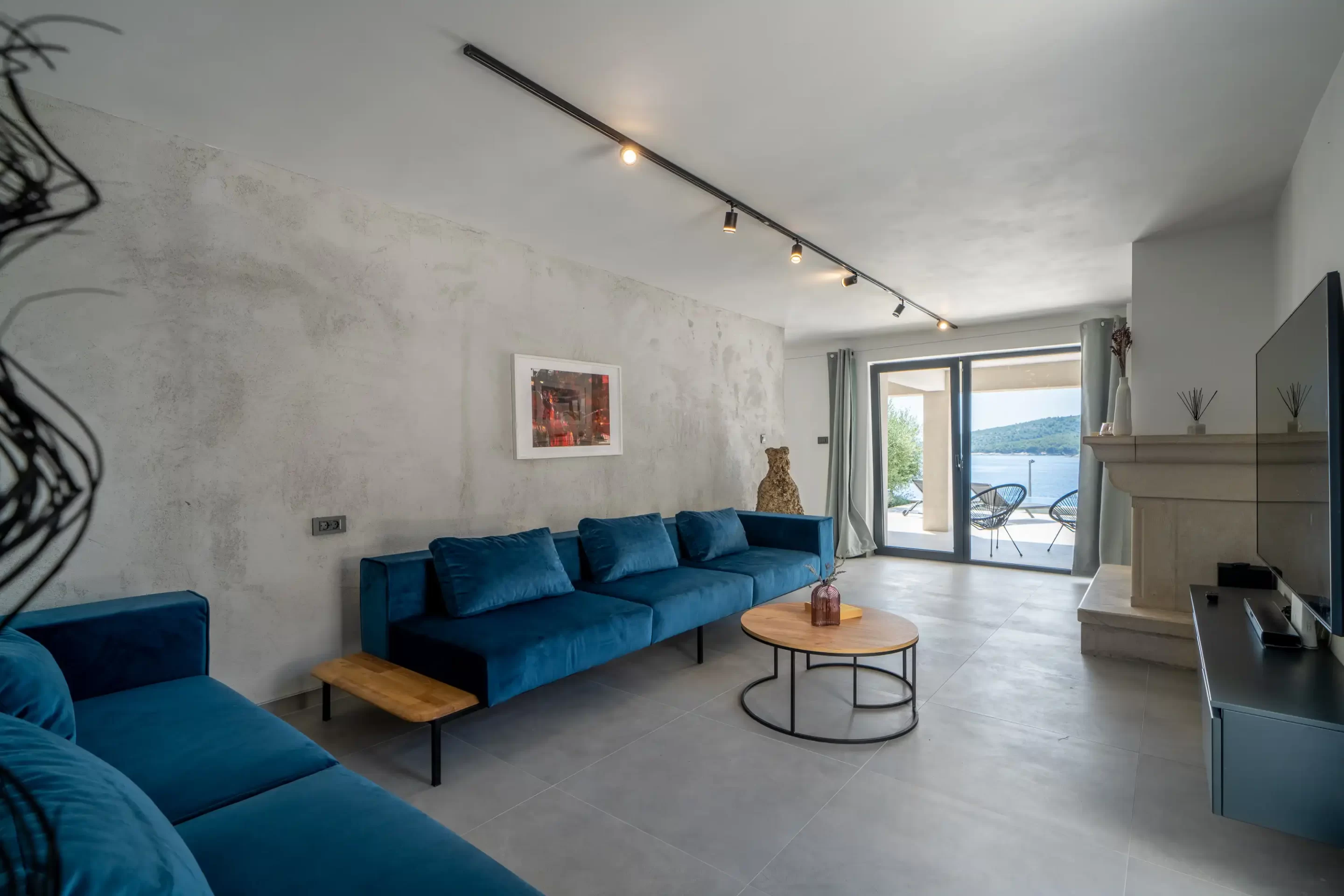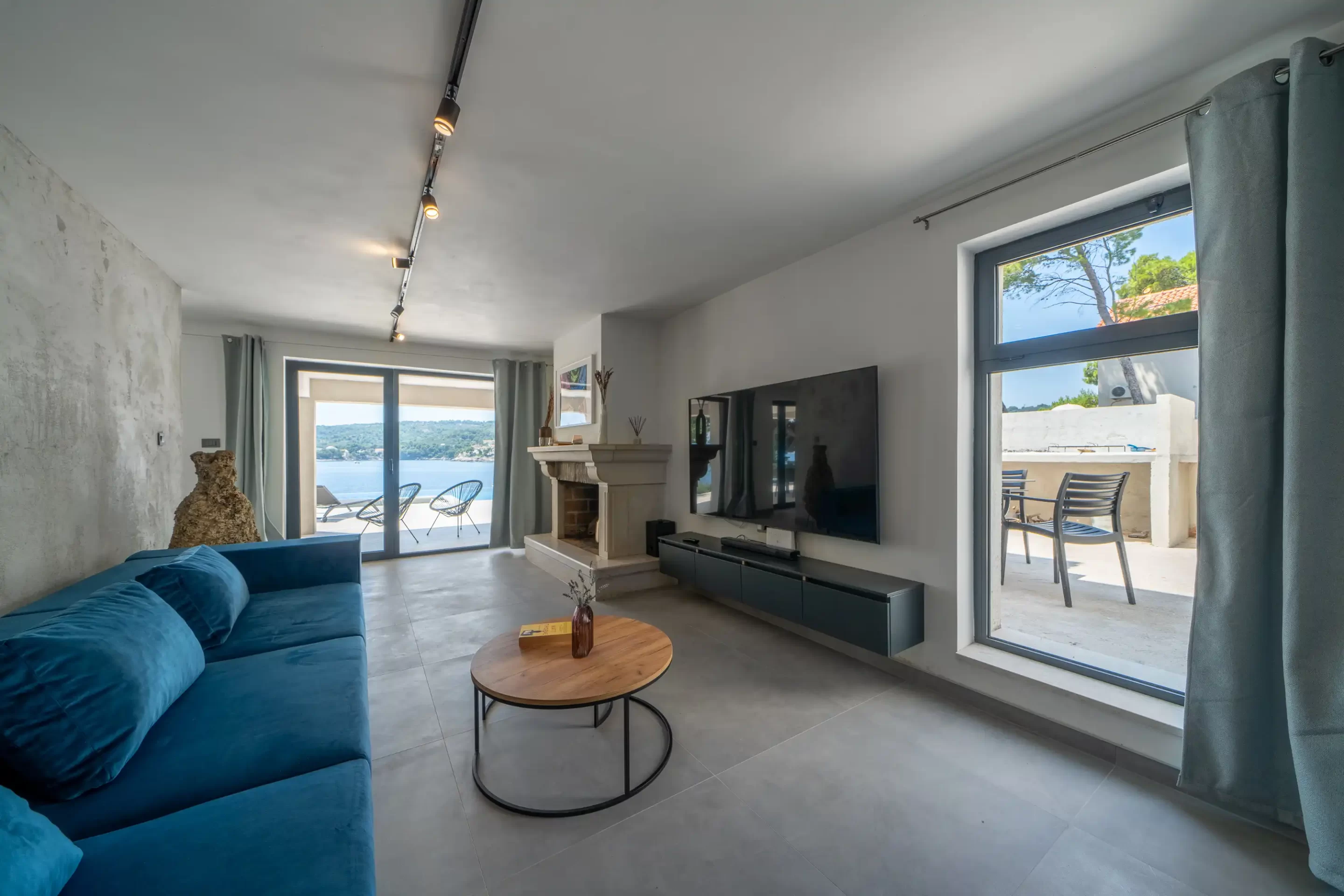 If you want to spend your vacation soaking up the sun, in front of the villa you will find a large and very inviting pool of 45 m2. If you rather take a swim in the crystal clear Adriatic Sea, the beach is just 25m away from the villa. Relax on one of the comfortable luxurious sun loungers while sipping a refreshing drink or reading your favourite book. Simple elegance that runs from the outside to the bedrooms will enchant you. Going inside you will get to the living area where you can relax by the fire and listen favorite music.