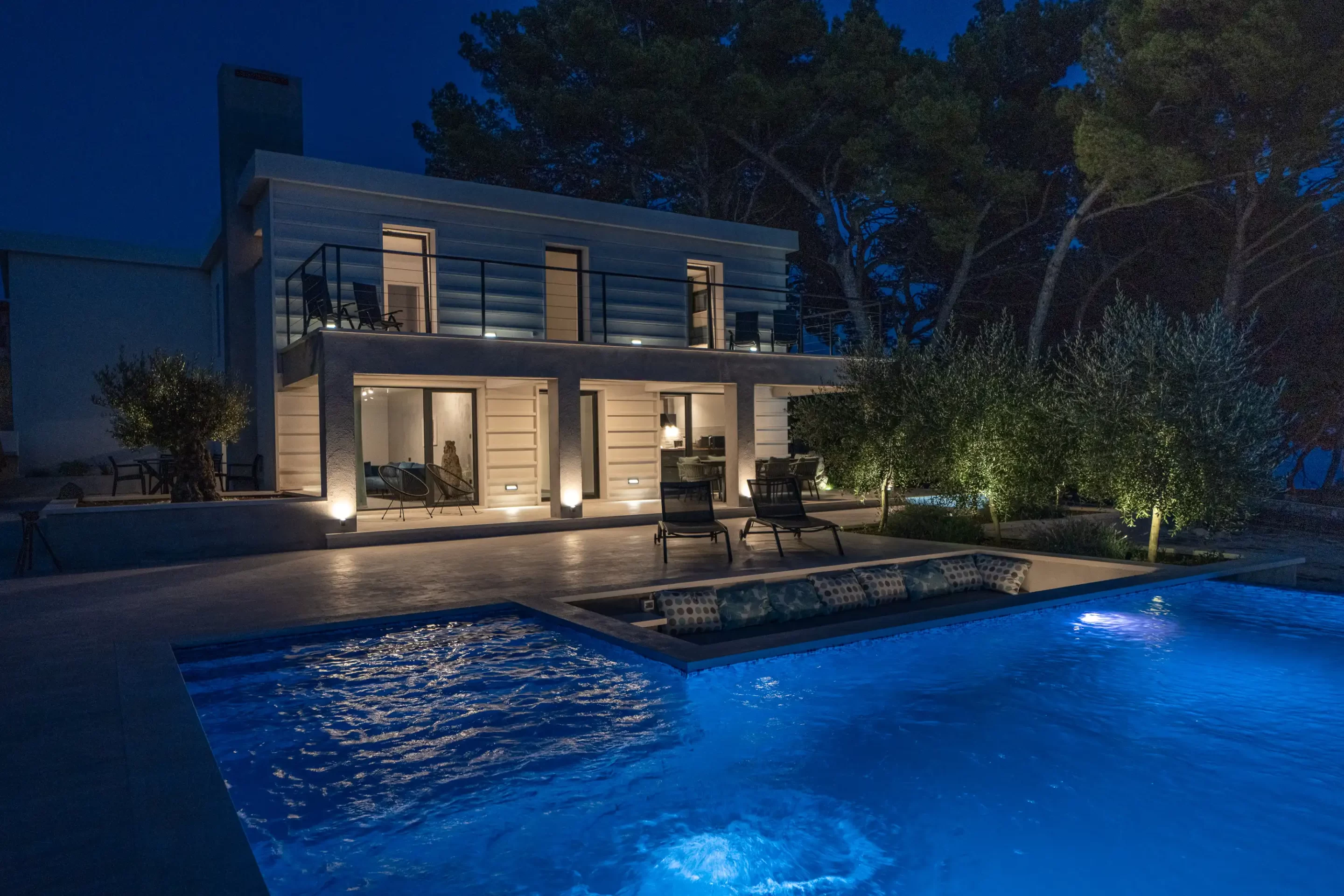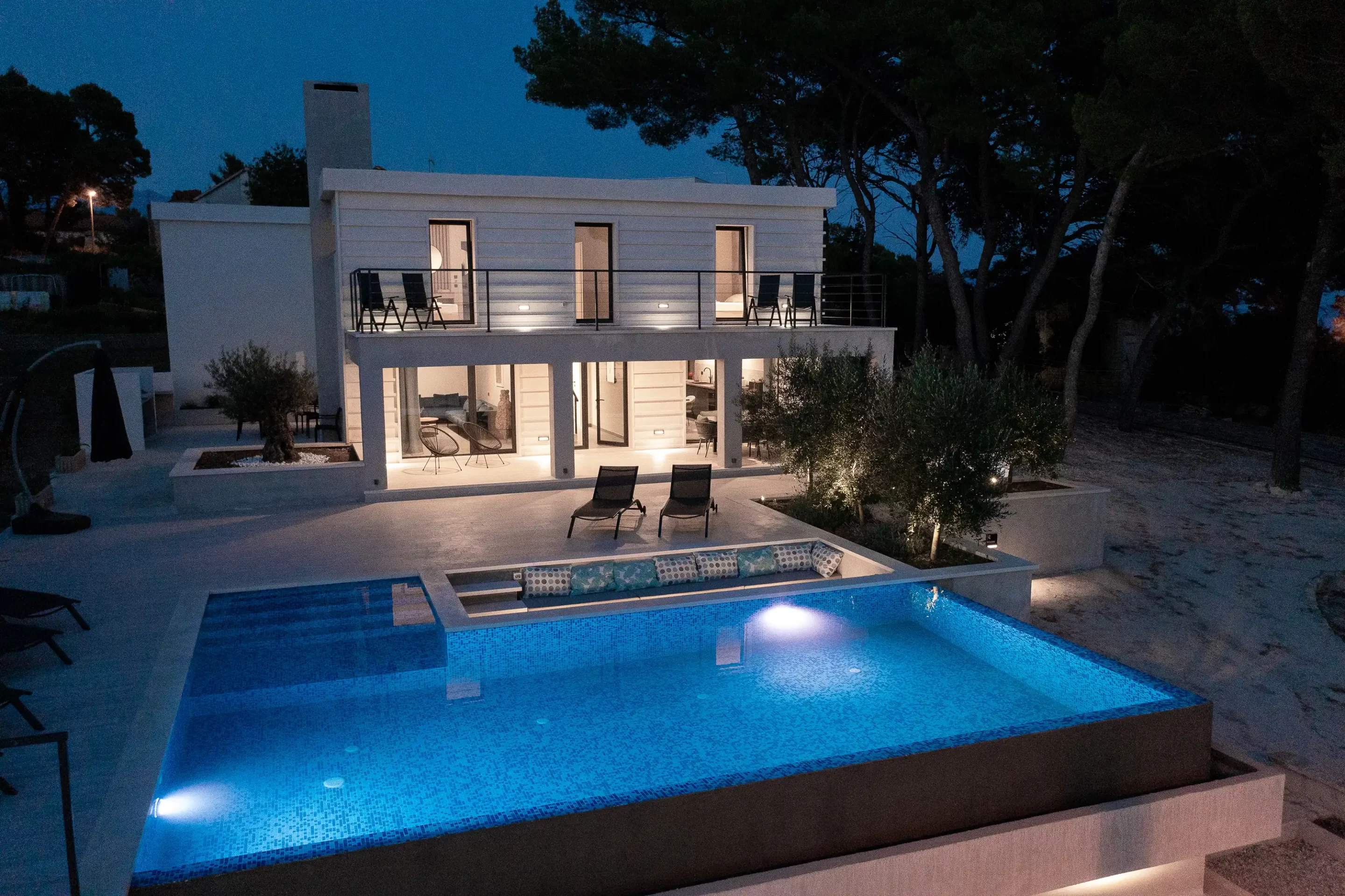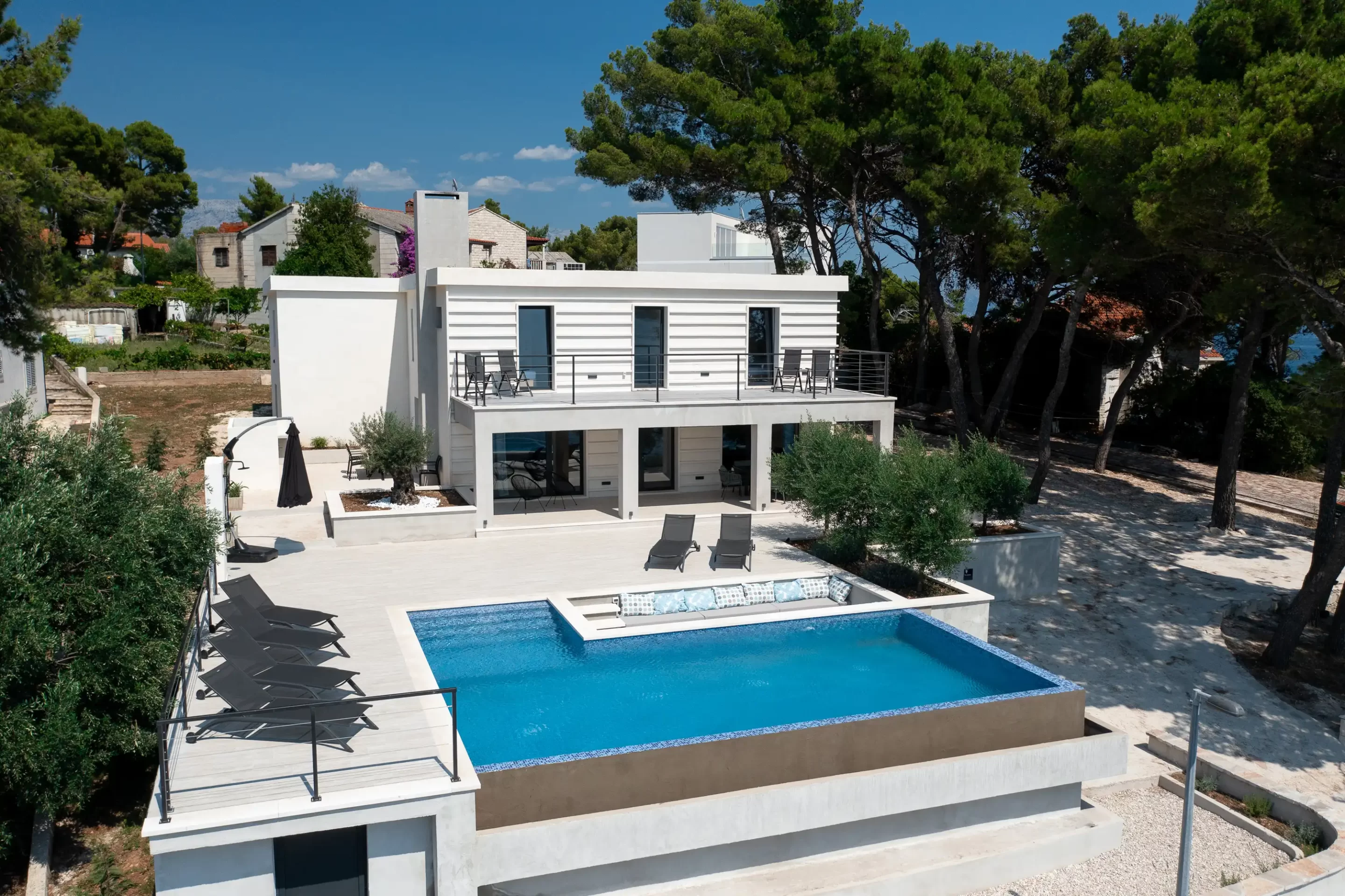 The luxurious villa is located on the Island of Brac, in the Hamlet of Sumartin, just a stone throw away from the sea.