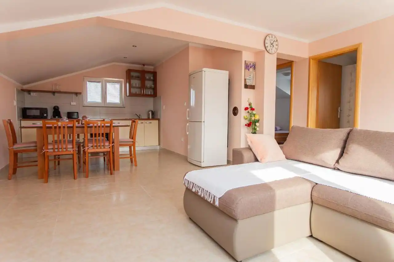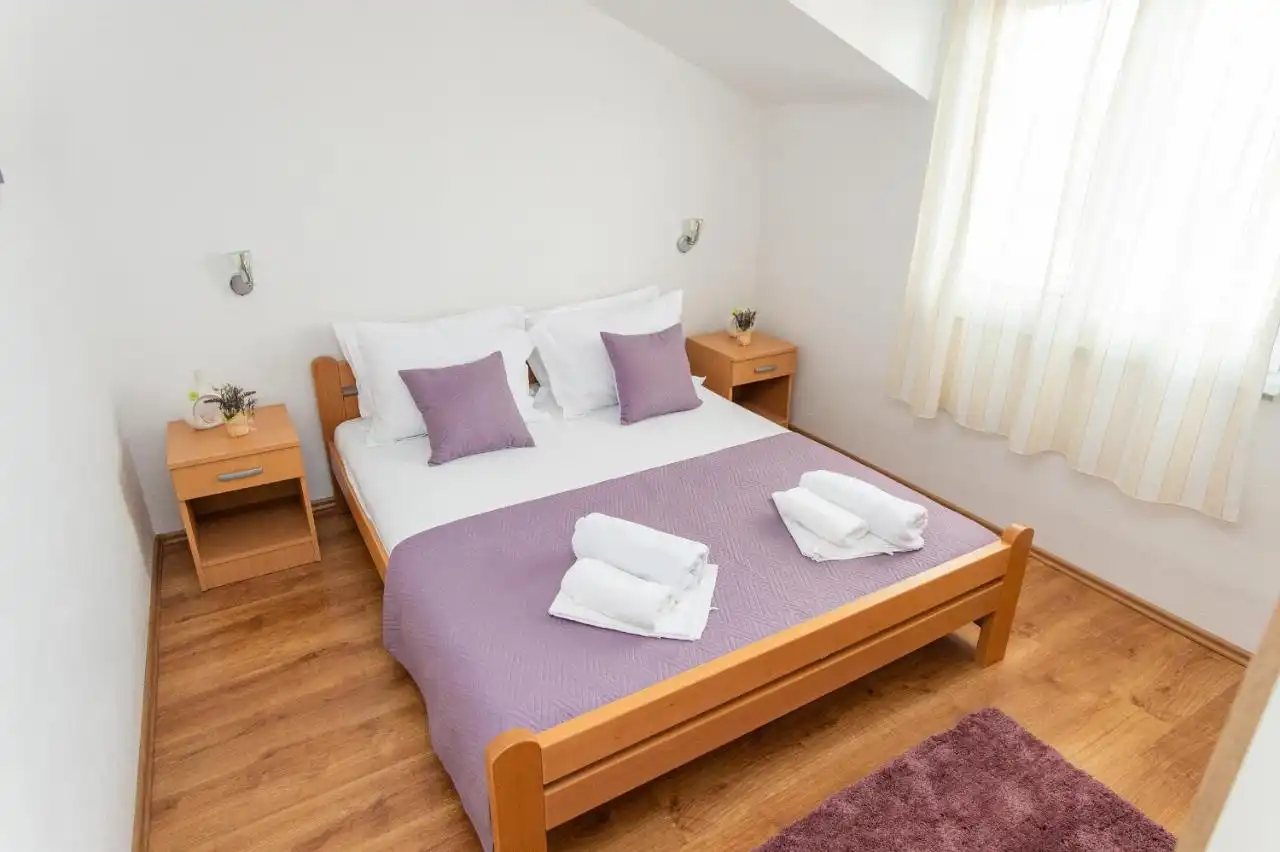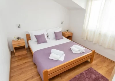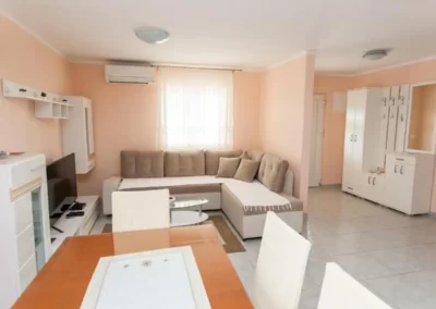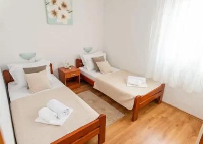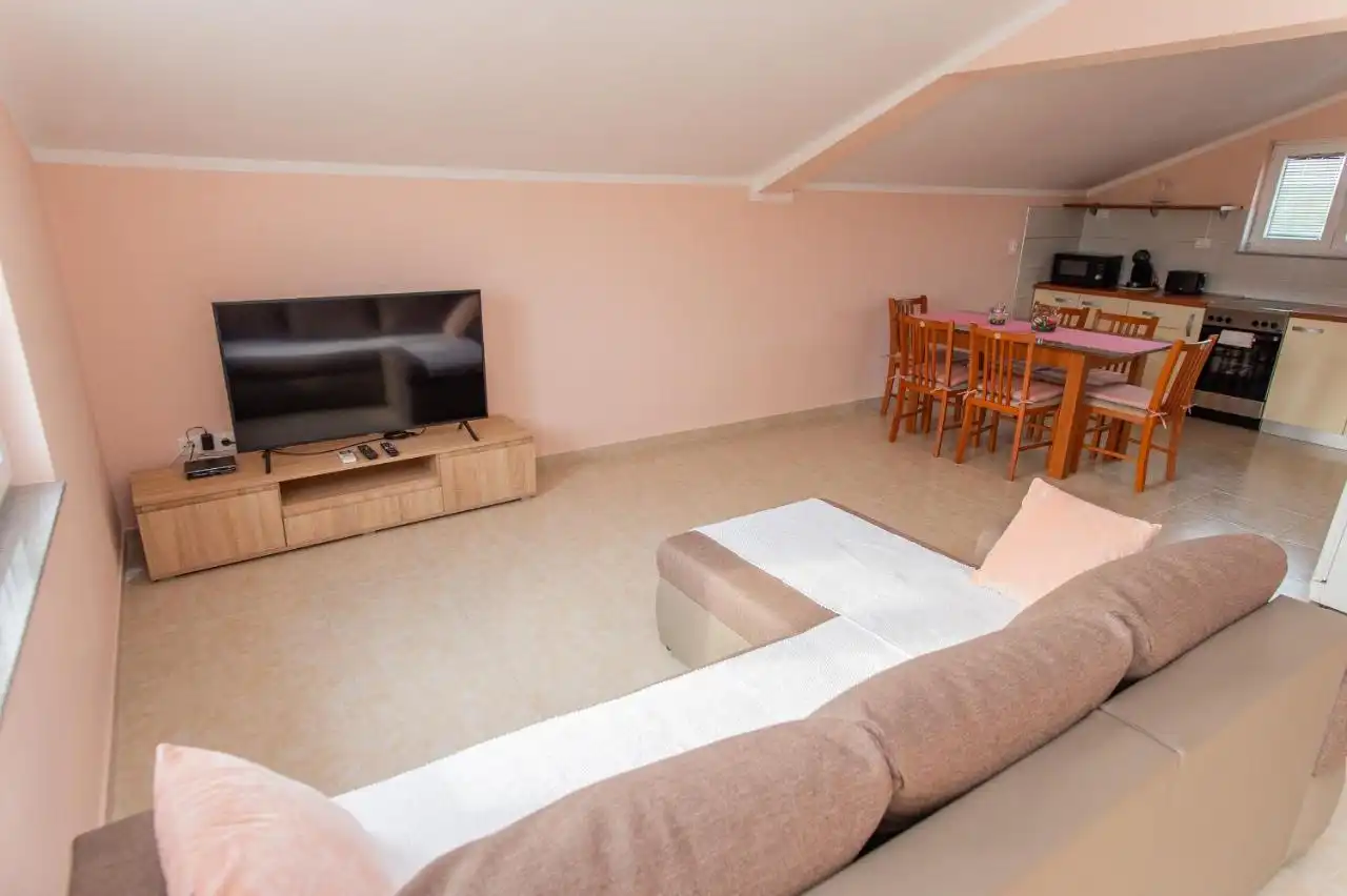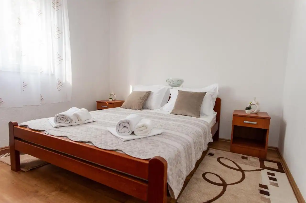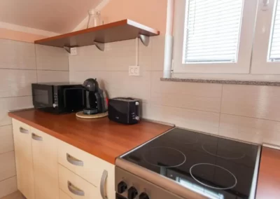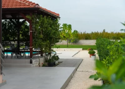 This spacious and pleasant holiday house is located in the residential part, a popular and interesting tourist destination near the Vodice and historic town of Šibenik. It consists of 2 fully equipped residential units spread over two floors, connected by an external staircase. The beautifully landscaped plot offers a variety of facilities for a fun and complete holiday, there is an outdoor pool, barbecue, canopy, deck chairs and swing.