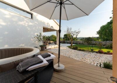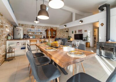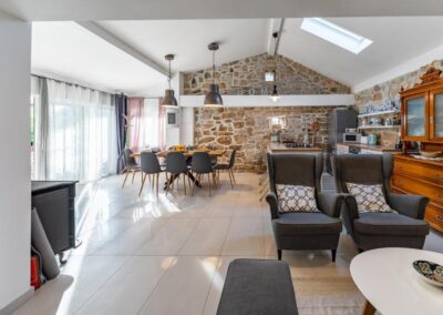 This Rustic villa in real Dalmatian stone is ideal for rent but also as a family house. It consists of two living rooms, two kitchens, four bedrooms with three bathrooms and a large garden