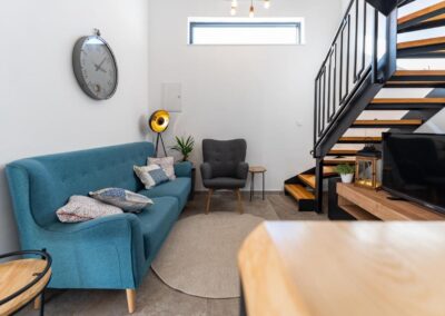 Guests can take in the views of the sea from the terrace, which also has outdoor furniture.